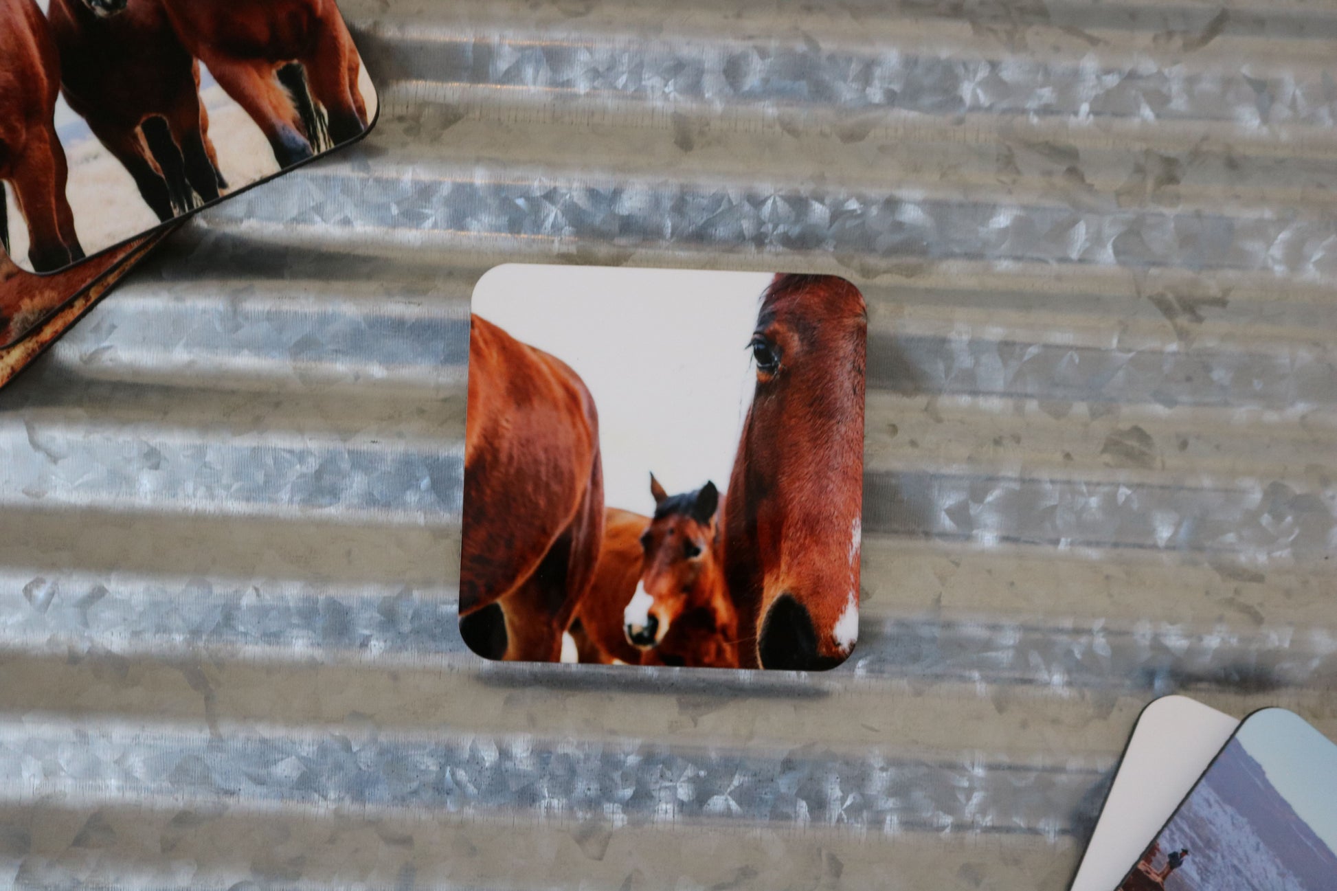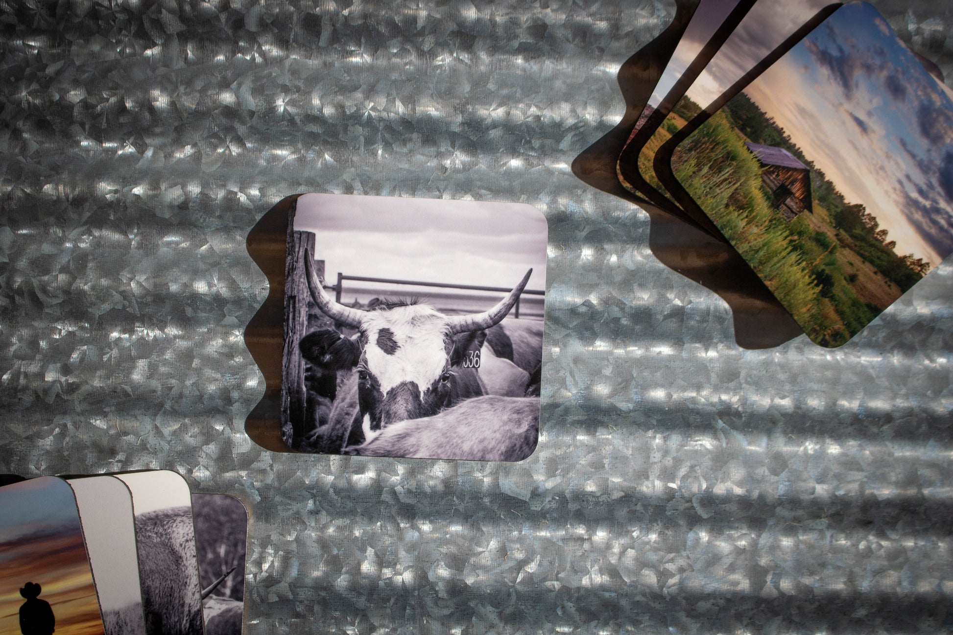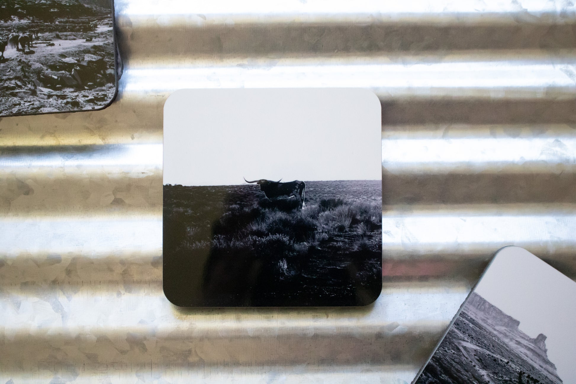 High gloss finish, cork board backing, 3.75" X 3.75"